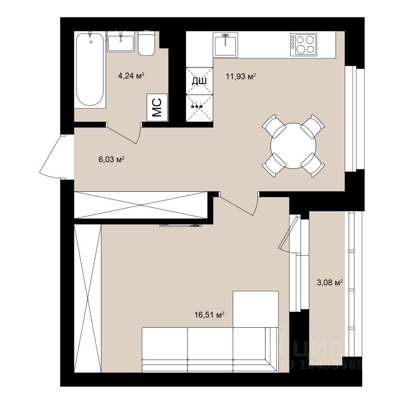 Жилая площадь16,3 м²