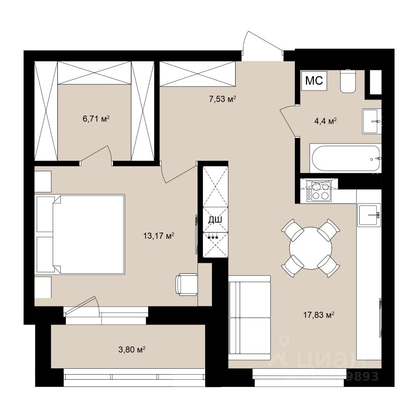 Общая площадь50,04 м²