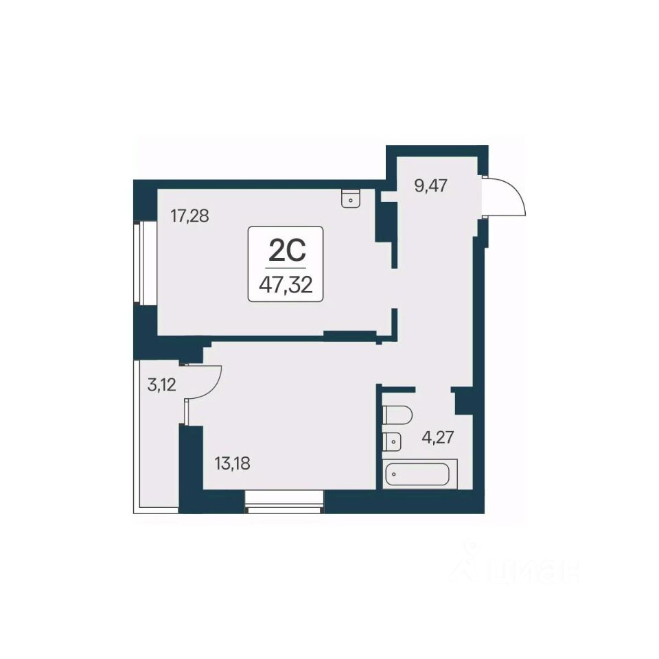 "В продаже 2-комнатная квартира, площадью 47.32, под номером 370 в новом Доме ЖК "Квартал на Игарской"." Жилой квартал "Расцветай на Игарской" - это счастливая жизнь в тихом и уютном квартале с увлекательным двором-парком!