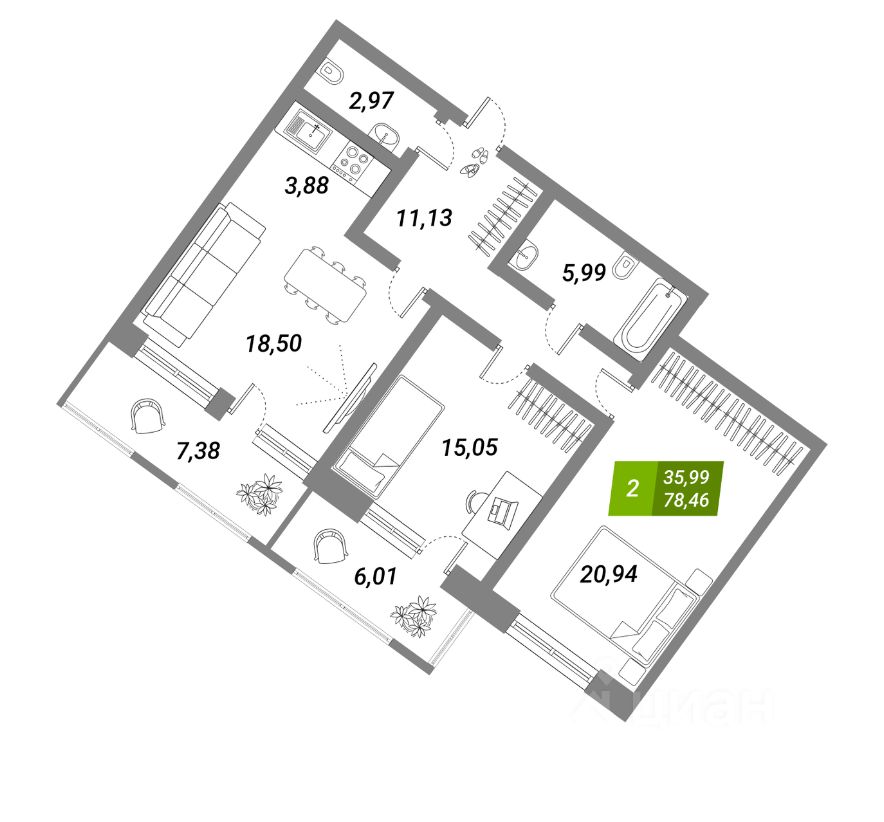 2 лоджии