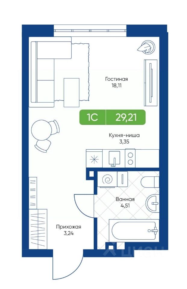 Общая площадь29,21 м²