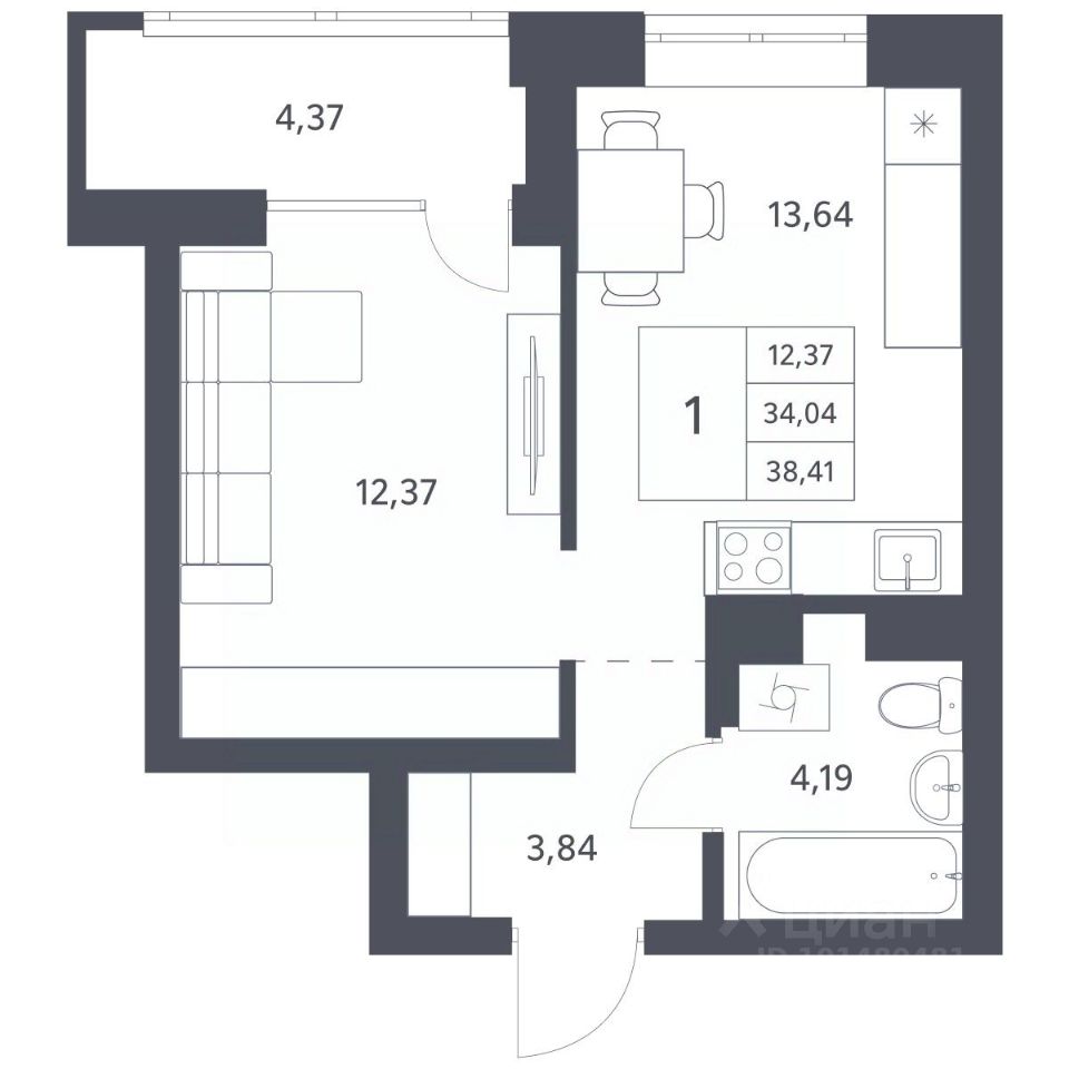 Продается 1-комн. квартира с чистовой отделкой. Квартира расположена на 4 этаже 21 этажного монолитно-кирпичного дома в жилом комплексе "Характер" от ГК "Поляков".