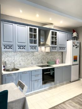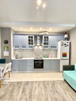 В квартире остается кухонный гарнитур со встроенной техникой: варочная панель Bosch, духовой шкаф Bosch, вытяжка, в ванной водонагреватель.