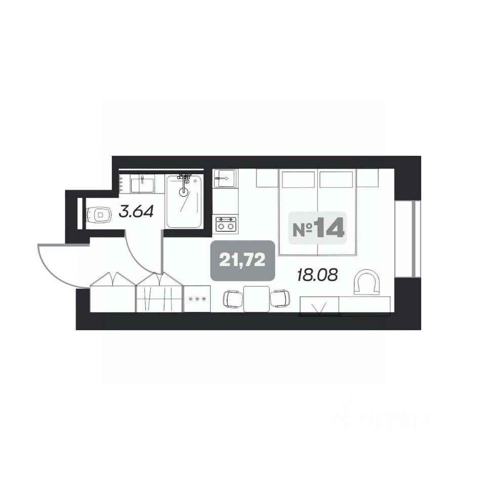 Общая площадь21,72 м²