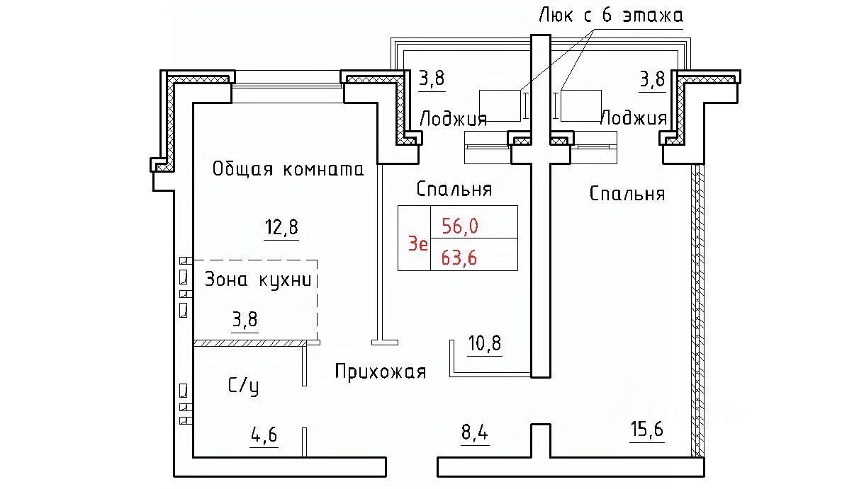 Общая площадь63,7 м²