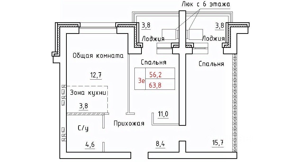 Общая площадь63,7 м²