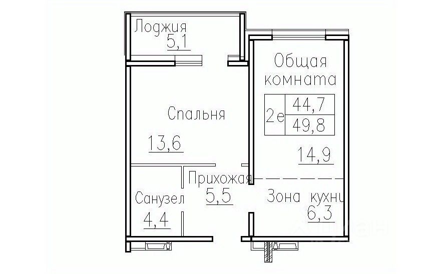 Общая площадь49,8 м²
