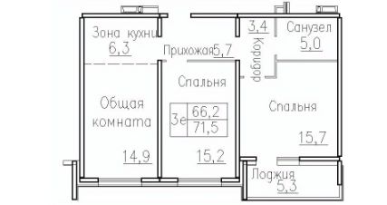 Продаётся 3-комнатная квартира в сданном доме (Фламинго, 20 (поз. 5)), срок сдачи: II-кв. 2019, общей площадью 71.4 кв.м., на 1 этаже. Расположение, транспортная доступность