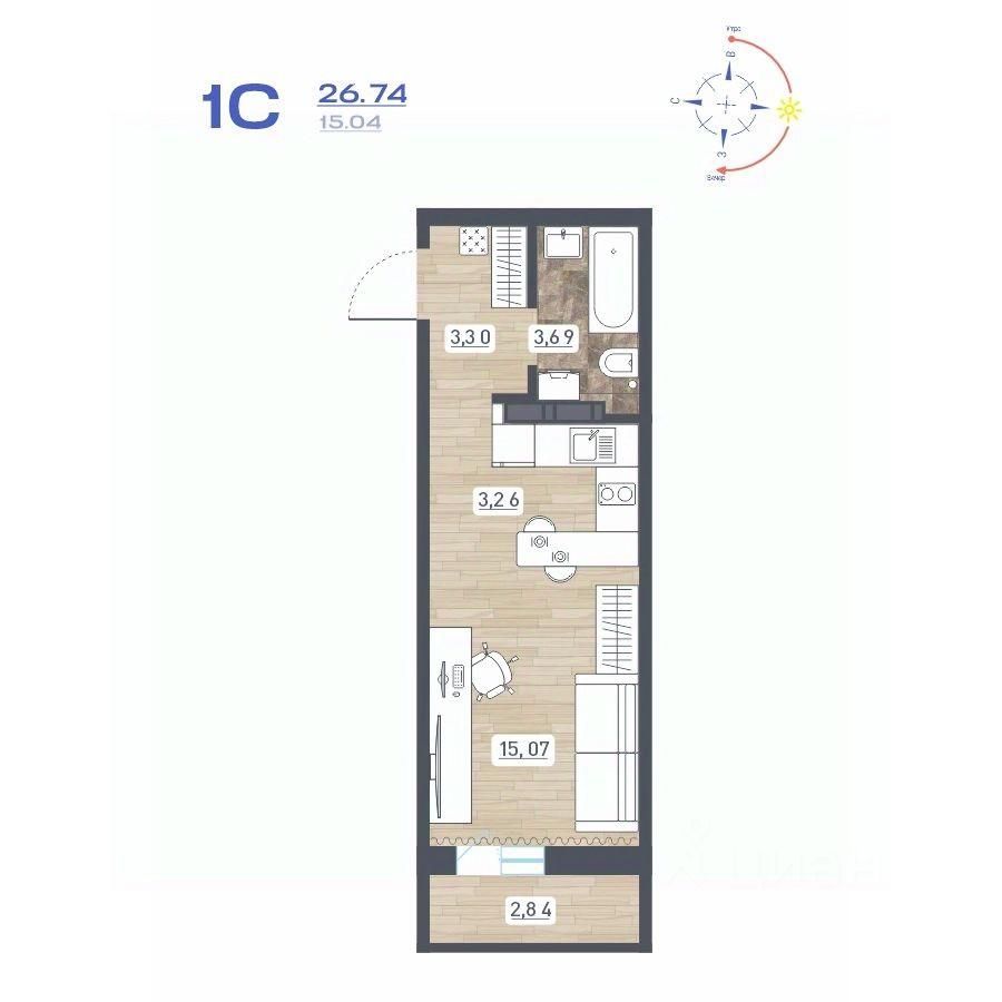 Продаётся студия в строящемся доме (Дом 10), срок сдачи: IV-кв. 2025, общей площадью 26.74 кв.м., на 13 этаже. Расположение, транспортная доступность