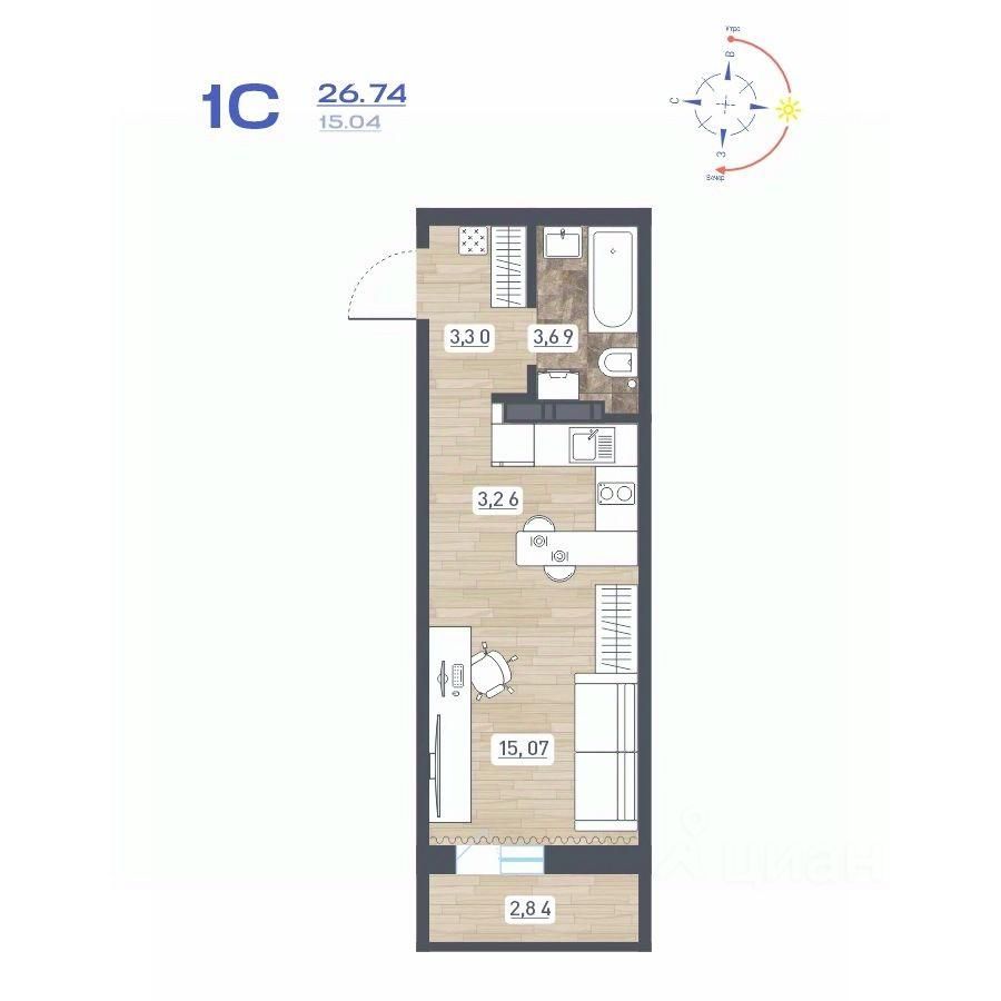 Продаётся студия в строящемся доме (Дом 10), срок сдачи: IV-кв. 2025, общей площадью 26.74 кв.м., на 15 этаже. Расположение, транспортная доступность