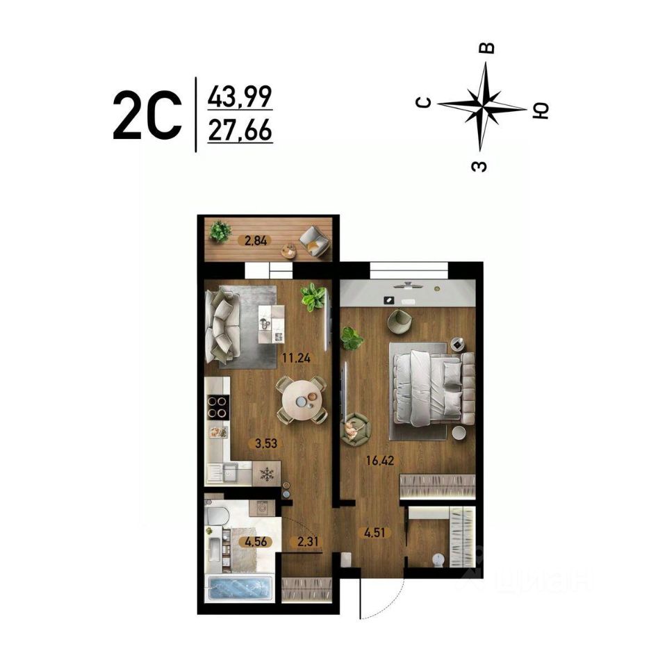 Продаётся 2-комнатная квартира в сданном доме (Дом 10), срок сдачи: IV-кв. 2025, общей площадью 43.99 кв.м., на 3 этаже. Расположение, транспортная доступность