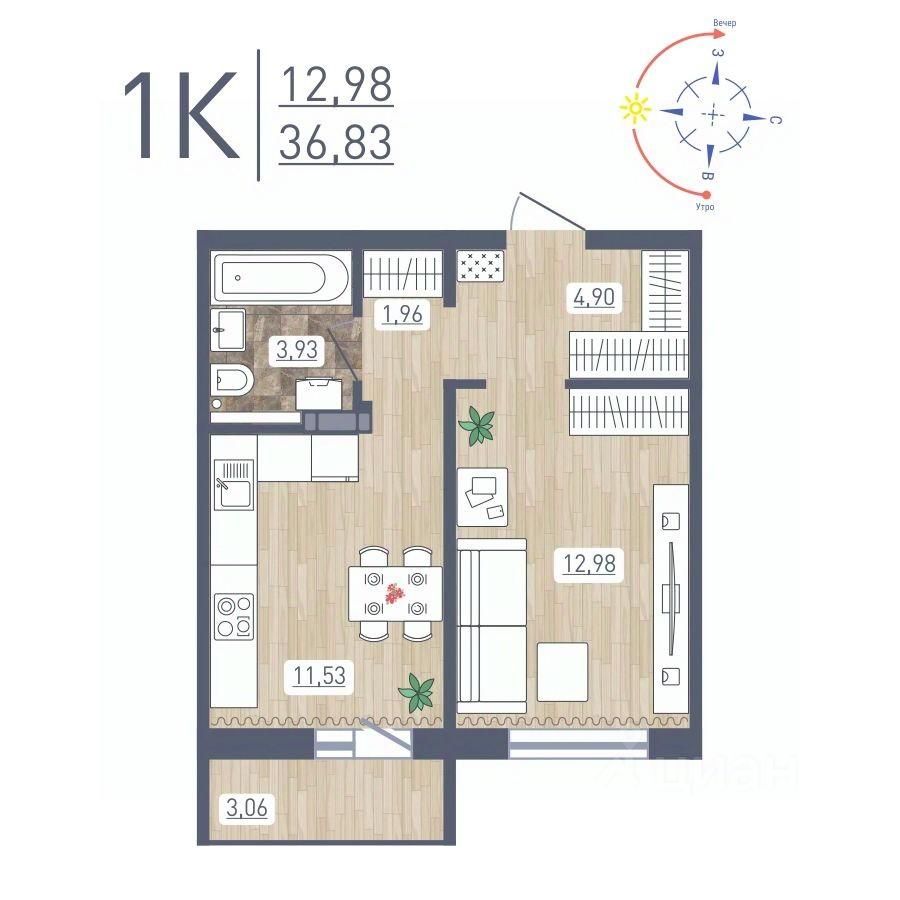 Продаётся 1-комнатная квартира в сданном доме (Забалуева, 69 (Дом 9)), срок сдачи: IV-кв. 2024, общей площадью 36.83 кв.м., на 6 этаже. Расположение, транспортная доступность