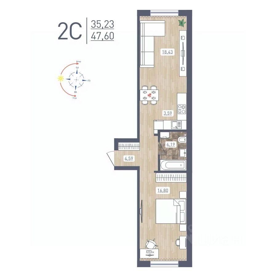 Продаётся 2-комнатная квартира в сданном доме (Забалуева, 69 (Дом 9)), срок сдачи: IV-кв. 2024, общей площадью 47.6 кв.м., на 1 этаже. Расположение, транспортная доступность