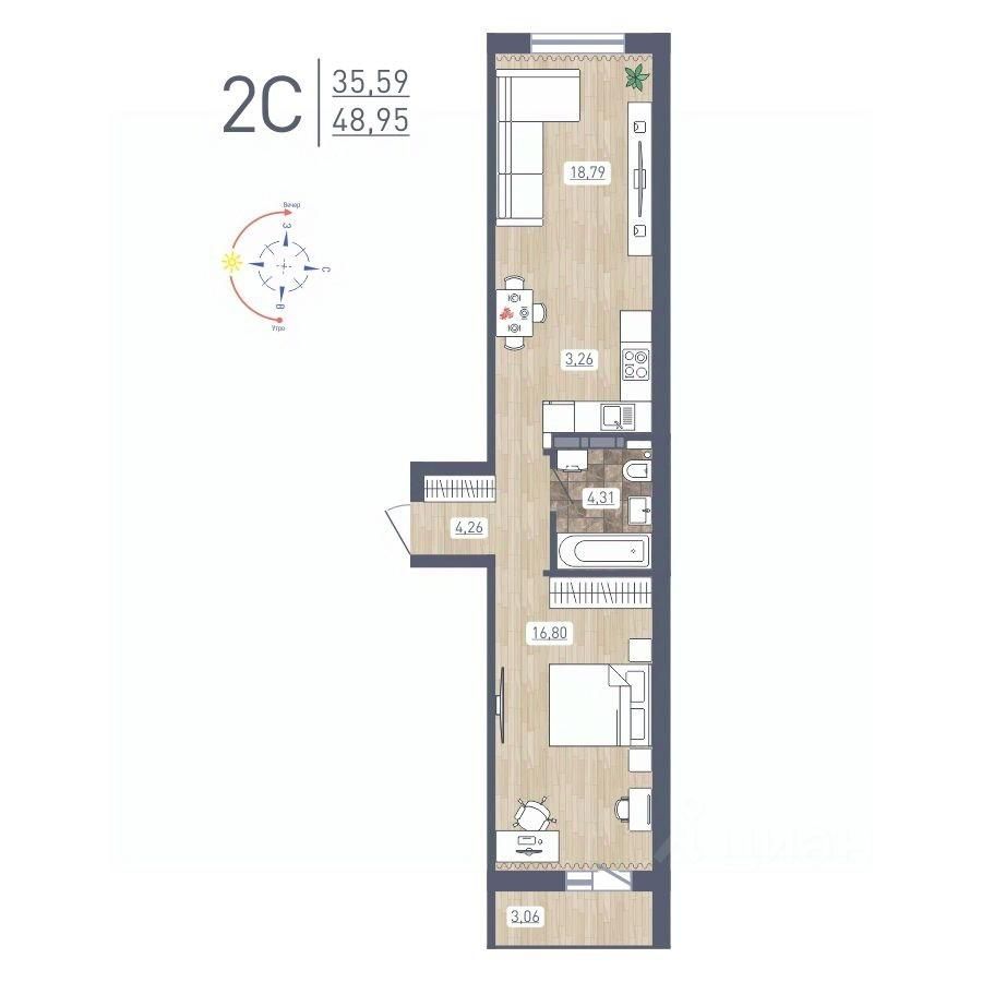 Продаётся 2-комнатная квартира в сданном доме (Забалуева, 69 (Дом 9)), срок сдачи: IV-кв. 2024, общей площадью 48.95 кв.м., на 12 этаже. Расположение, транспортная доступность