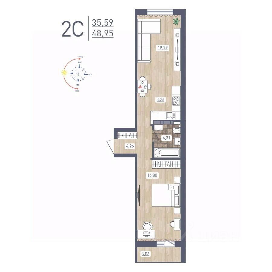Продаётся 2-комнатная квартира в сданном доме (Забалуева, 69 (Дом 9)), срок сдачи: IV-кв. 2024, общей площадью 48.95 кв.м., на 15 этаже. Расположение, транспортная доступность