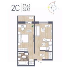 Продаётся 2-комнатная квартира в сданном доме (Забалуева, 69 (Дом 9)), срок сдачи: IV-кв. 2024, общей площадью 44.81 кв.м., на 6 этаже. Расположение, транспортная доступность