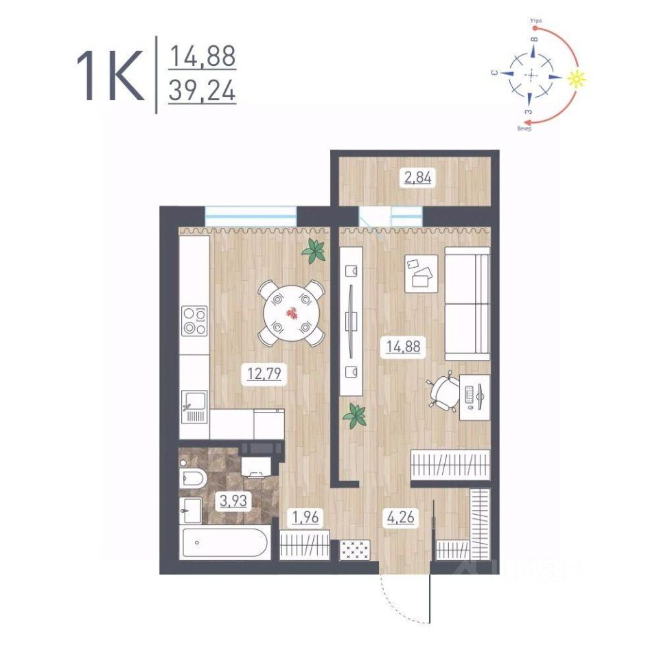 Продаётся 1-комнатная квартира в строящемся доме (Дом 11), срок сдачи: IV-кв. 2025, общей площадью 39.24 кв.м., на 4 этаже. Расположение, транспортная доступность