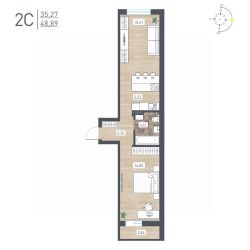 Продаётся 2-комнатная квартира в сданном доме (Забалуева, 69/2 (Дом 11)), срок сдачи: IV-кв. 2025, общей площадью 48.89 кв.м., на 2 этаже. Расположение, транспортная доступность