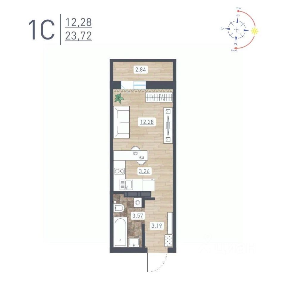Продаётся студия в строящемся доме (Дом 11), срок сдачи: IV-кв. 2025, общей площадью 23.72 кв.м., на 15 этаже. Расположение, транспортная доступность