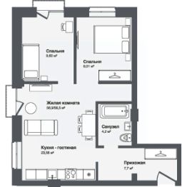 Общая площадь56,86 м²