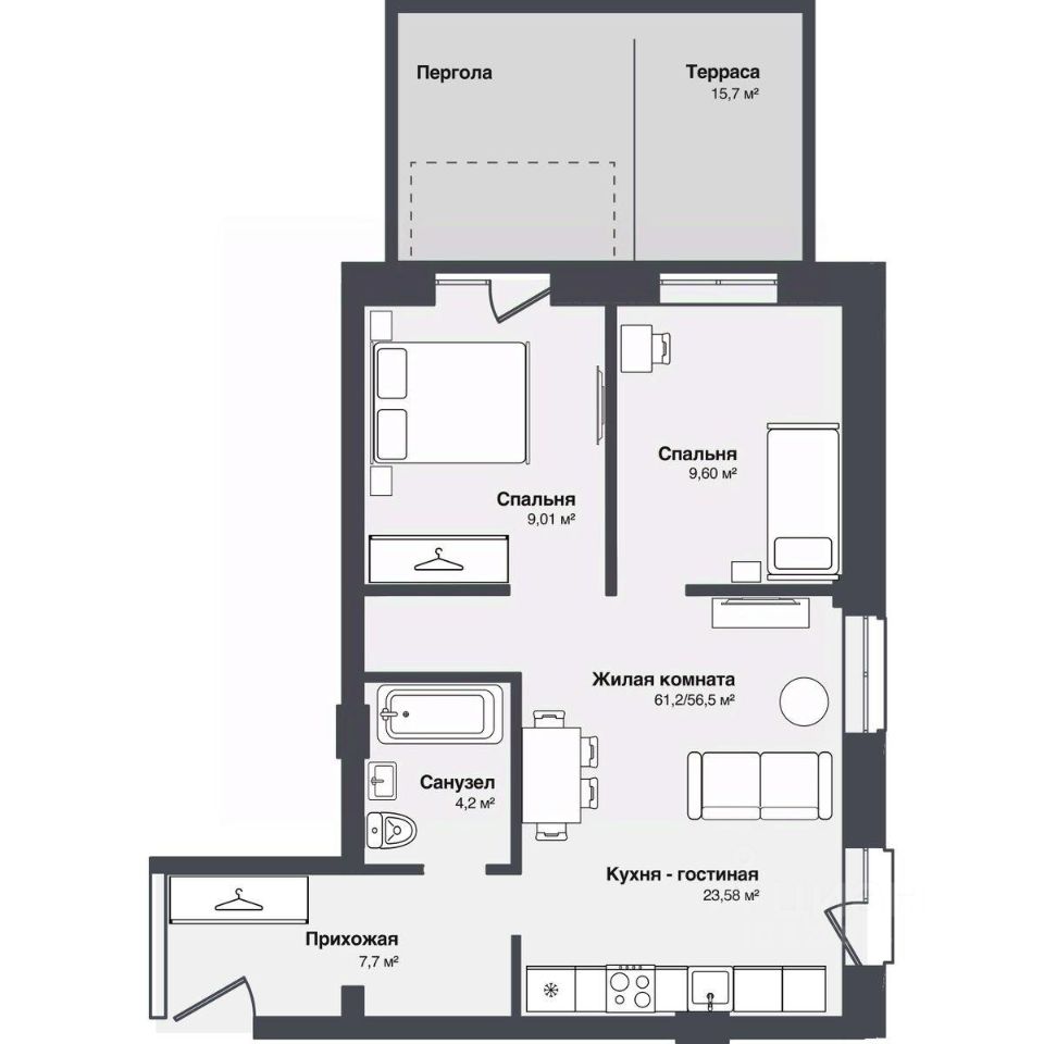 Общая площадь61,21 м²
