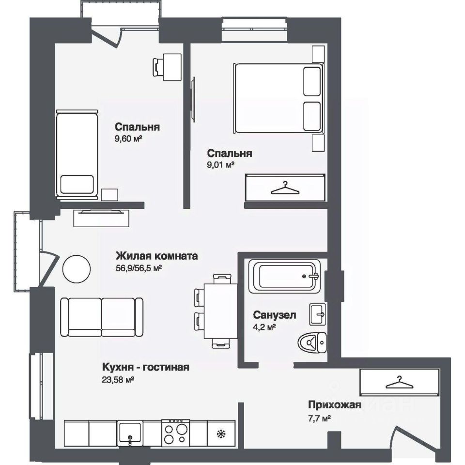 56,86 м²