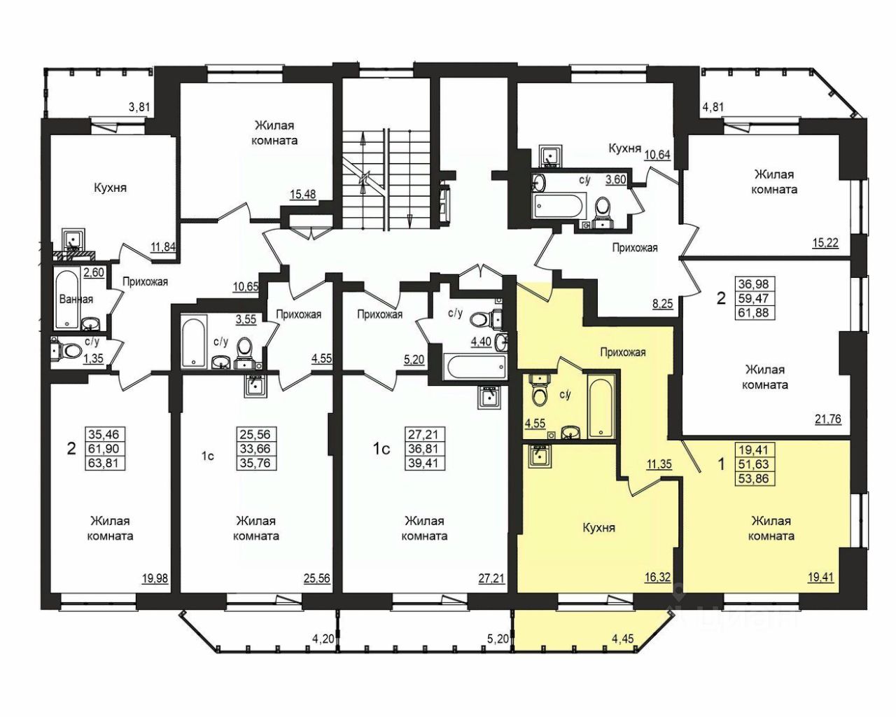В доме представлены одно- и двухкомнатные квартиры площадью от 38 до 70 м2. Высота потолков - 2,8 м.