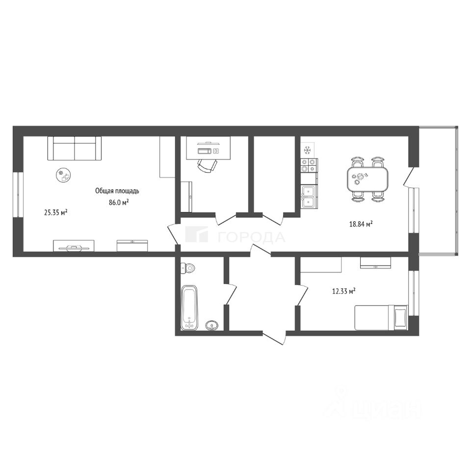 86 м²