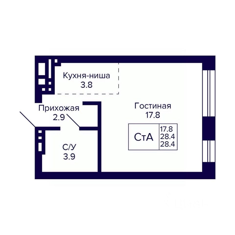 Общая площадь28,4 м²