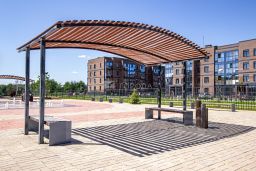 Придомовая территория охраняется и полностью огорожена, установлено видеонаблюдение и шлагбаум. Во дворе нет автомобилей, что обеспечивает безопасность и комфорт для детей — здесь расположены детская и спортивная площадки. До школы и детского сада всего 5 минут пешком. В шаговой доступности (100-150 метров) находятся все необходимые магазины, аптеки и услуги.