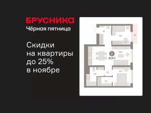 Квартира с кухней-гостиной и двумя спальнями в квартале "Лебедевский". Особенности планировки: гардеробная, разнесённые спальни, предчистовая отделка, балкон.