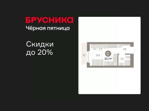 Однокомнатная студия с предчистовой отделкой в ЖК "Лебедевский" на 6 этаже. Общая площадь: 20.7 кв.м., площадь гостиной 12.8 кв.м., из которых 5 кв.м. выделено под кухонную зону. Все окна выходят на одну сторону. В квартире один балкон, один совмещенный санузел. Высота потолков 2.82 м.