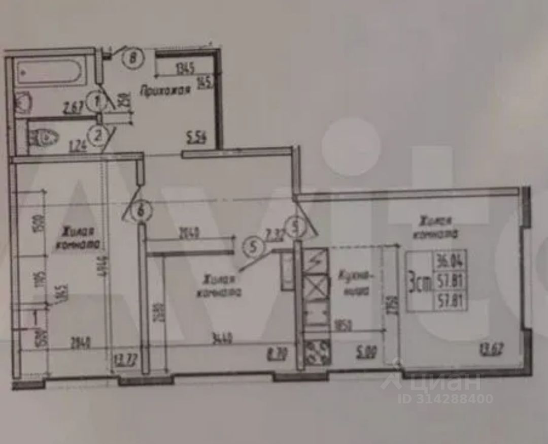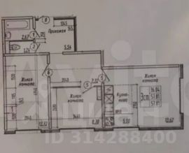 В продаже просторная трехкомнатная студия под самоотделку.