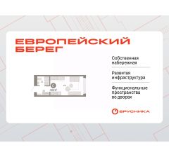 Однокомнатная студия с предчистовой отделкой в Микрорайон "Европейский Берег" на 6 этаже. Общая площадь: 24.29 кв.м., площадь гостиной 17.5 кв.м., из которых 5 кв.м. выделено под кухонную зону. Все окна выходят на одну сторону. В квартире один совмещенный санузел. Высота потолков 2.7 м.