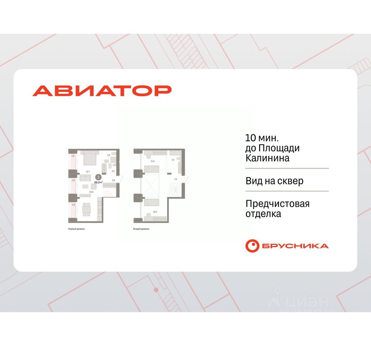 Продается 3-комн. квартира с предчистовой отделкой в Квартал "Авиатор" на 15 этаже. Двухуровневая квартира, большое количество свободного пространства дает возможность воплотить в жизнь свои дизайнерские идеи. Общая площадь: 89.92 кв.м., жилая: 36.1 кв.м., площадь просторной кухни-гостиной: 23.9 кв.м. Комнаты изолированные, все окна выходят на одну сторону. В квартире три балкона, два совмещенных санузла. Высота потолков 2.82 м.