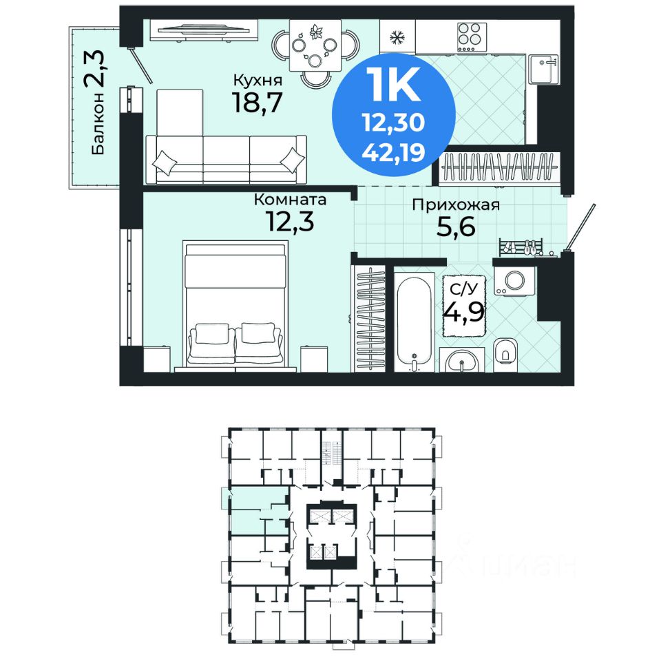 Общая площадь42,19 м²
