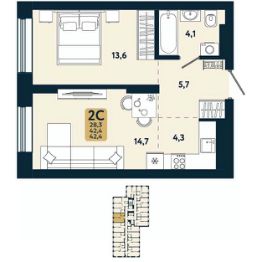 Общая площадь42,4 м²