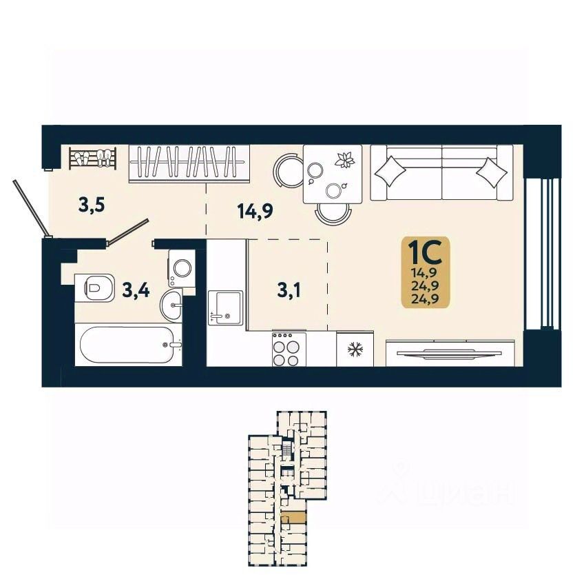 Общая площадь24,9 м²