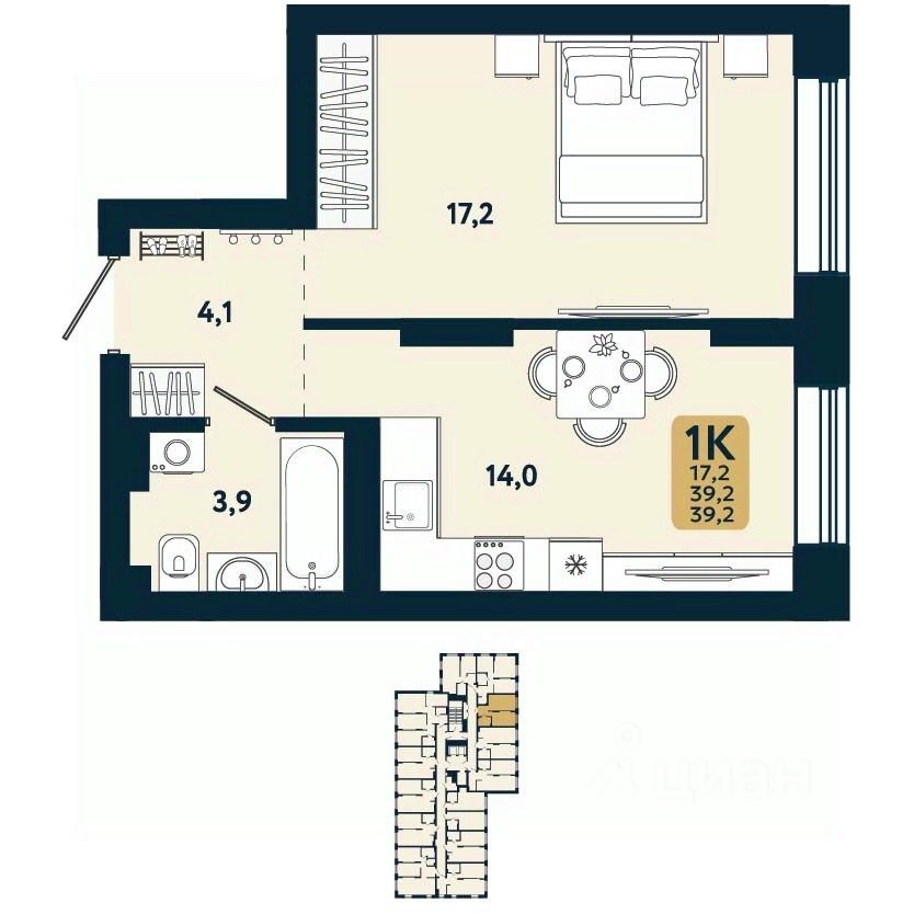 Общая площадь39,2 м²