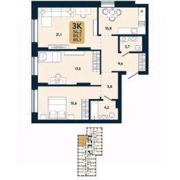 Общая площадь85,1 м²