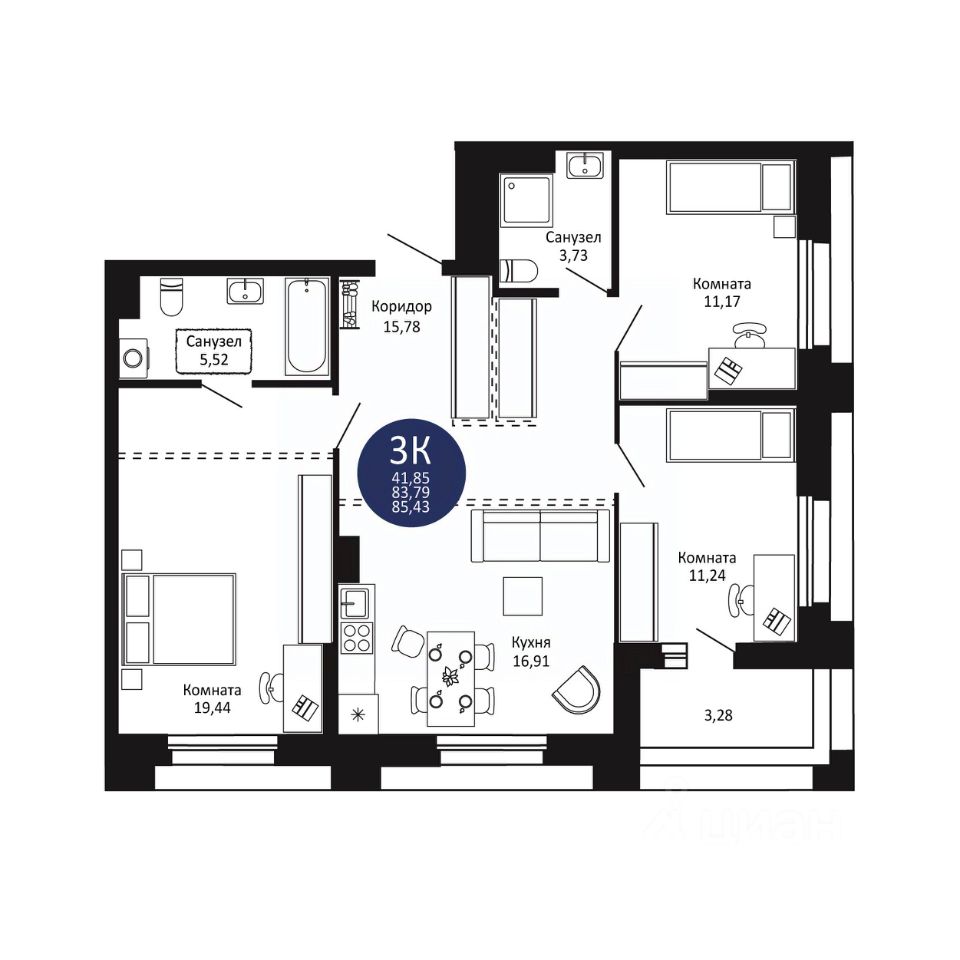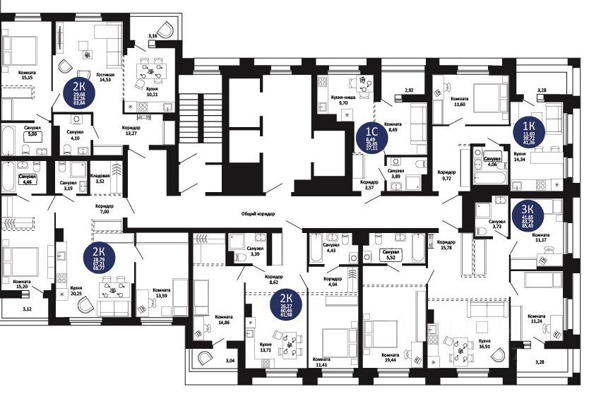 — широкая линейка планировок: от уютных студий до просторных 3К