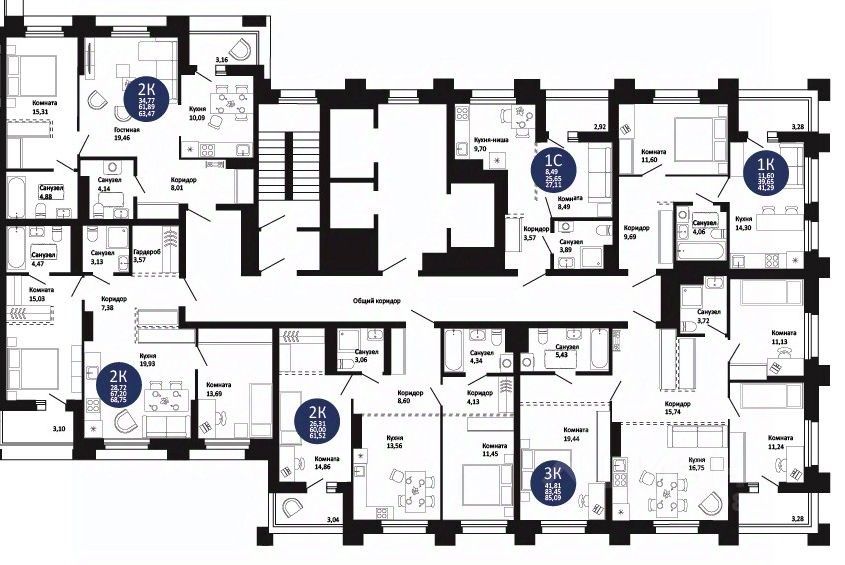 — широкая линейка планировок: от уютных студий до просторных 3К