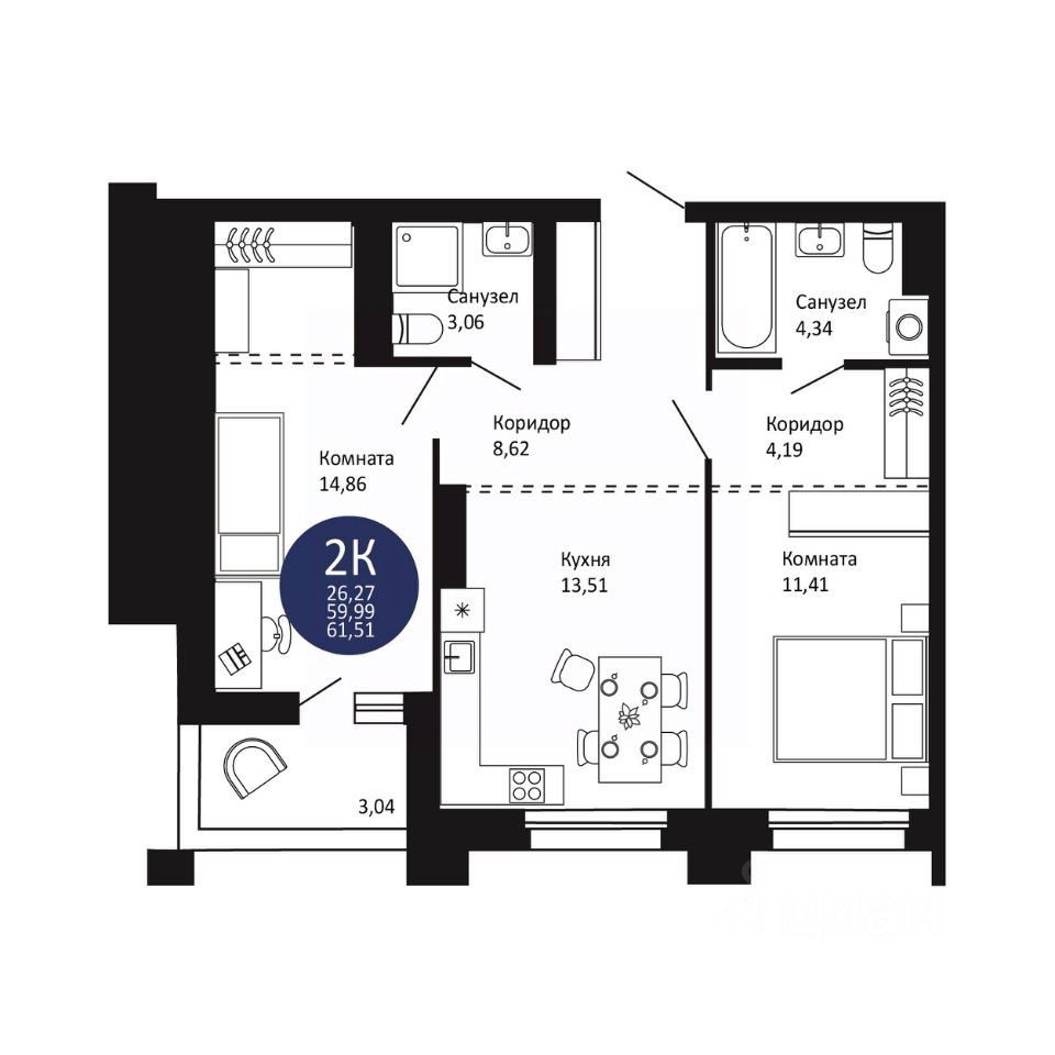 — широкая линейка планировок: от уютных студий до просторных 3К