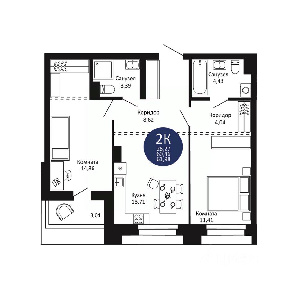 — широкая линейка планировок: от уютных студий до просторных 3К