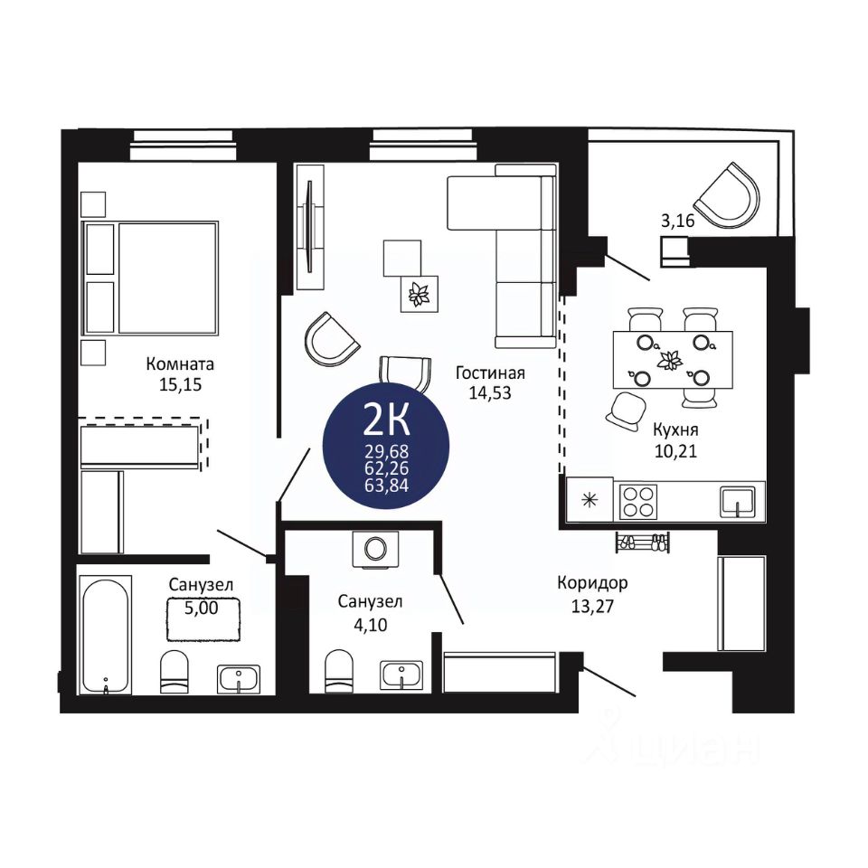— широкая линейка планировок: от уютных студий до просторных 3К