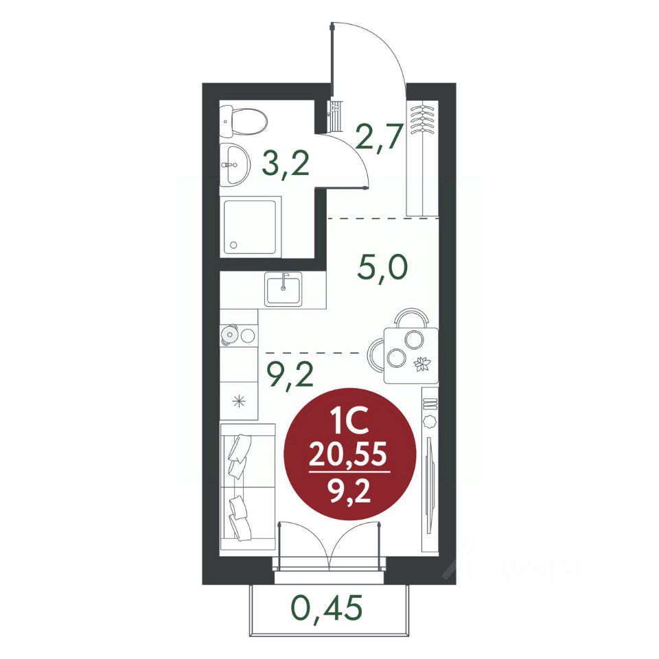 Общая площадь20,55 м²