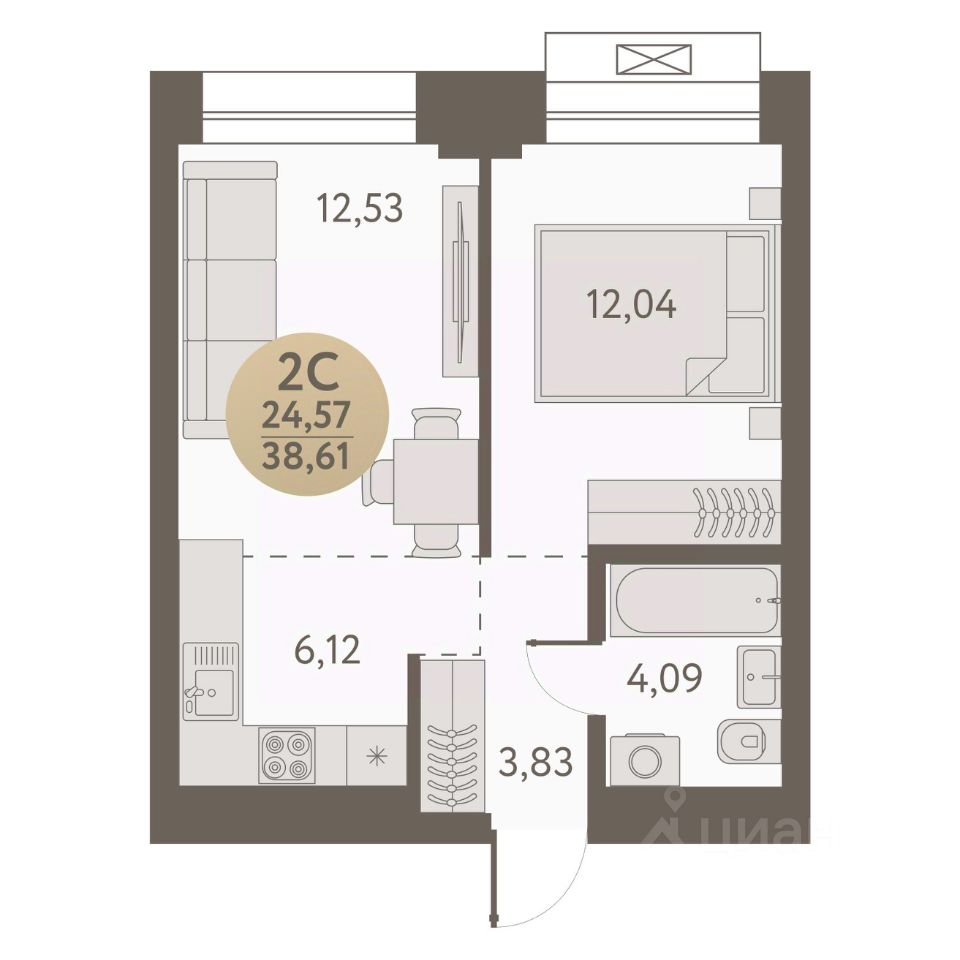 Общая площадь38,61 м²