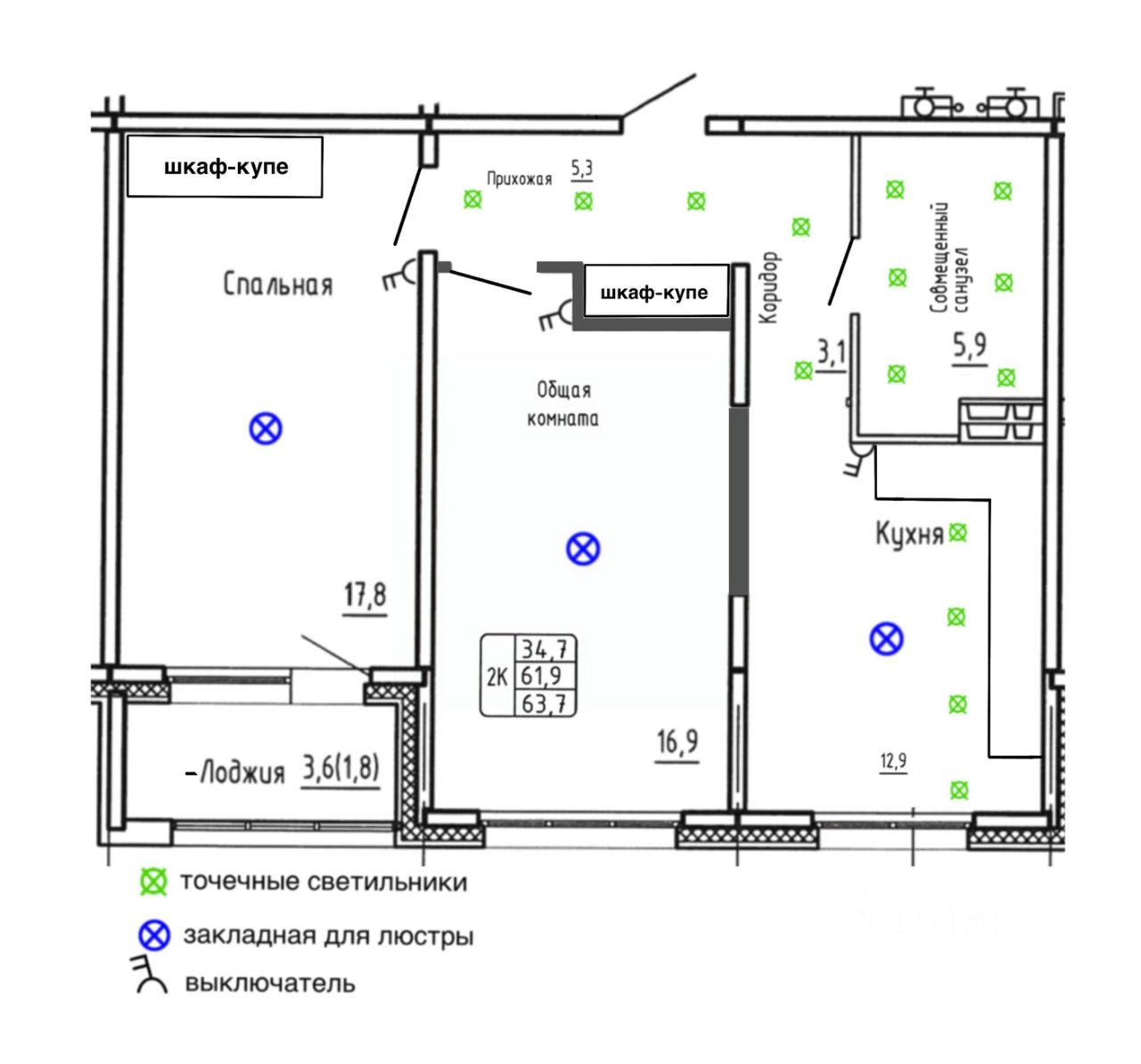 Общая площадь63,7 м²