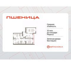 Квартира с кухней-гостиной и тремя спальнями в жилом районе "Пшеница". Особенности планировки: окна на две стороны, второй санузел, гардеробная, вид во двор, разнесённые спальни, предчистовая отделка, терраса на крыше.