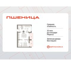 Продается однокомнатная квартира с предчистовой отделкой в ЖК "Пшеница" на 8 этаже. Общая площадь: 60.55 кв.м., жилая: 10.2 кв.м., площадь просторной кухни-гостиной: 30.7 кв.м. Все окна выходят на одну сторону. В квартире две лоджии, один совмещенный и один раздельный санузел. Высота потолков 2.82 м.
